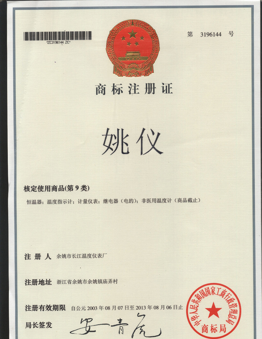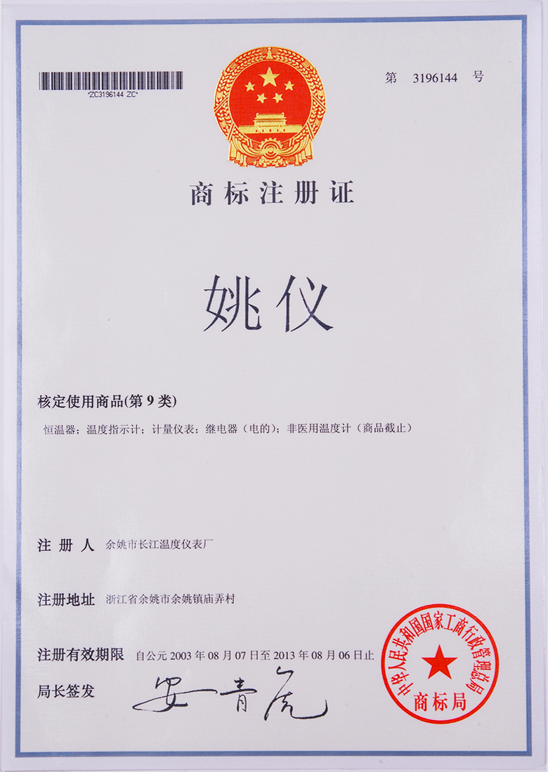 溫度儀表商標(biāo)證書