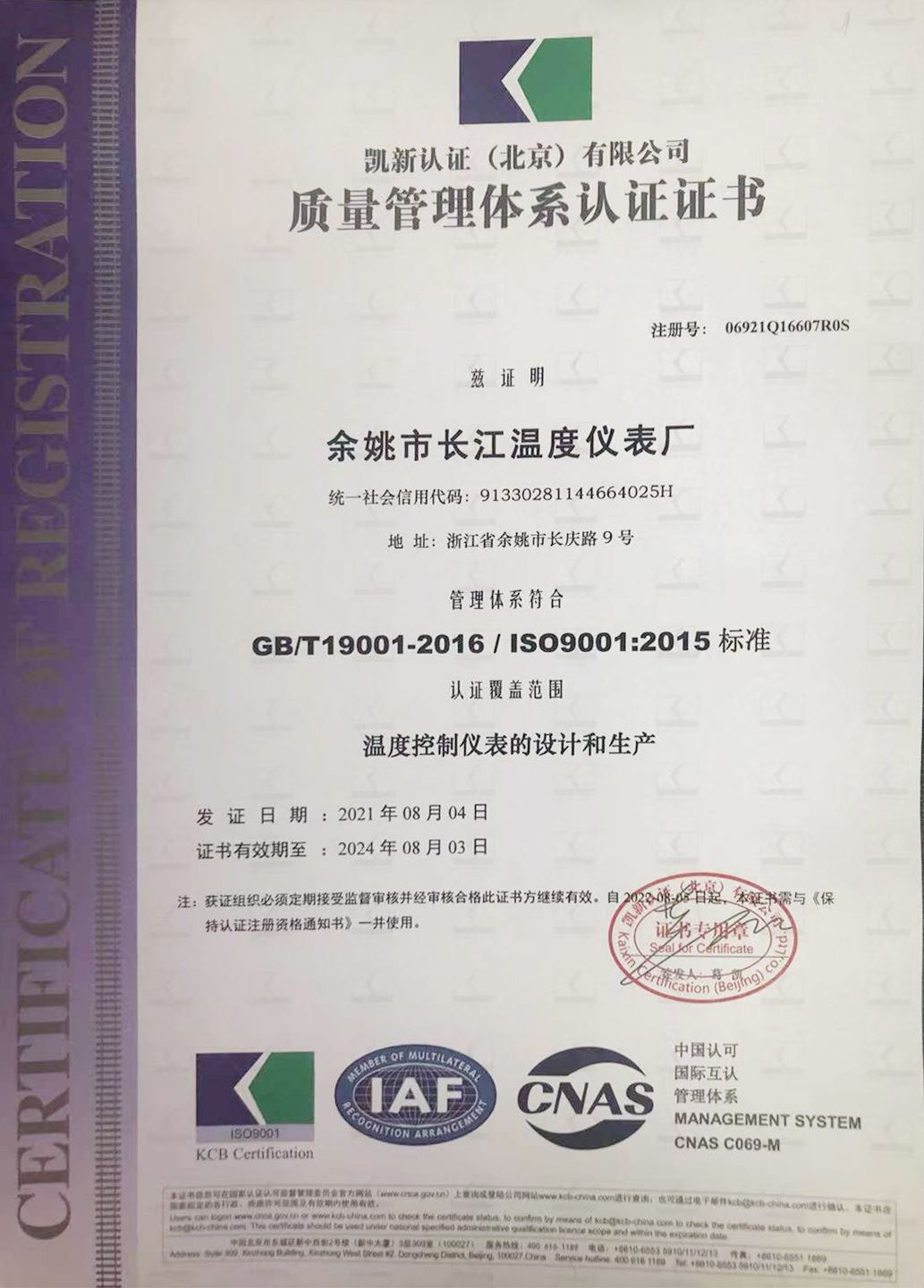 溫度儀表ISO9001:2015