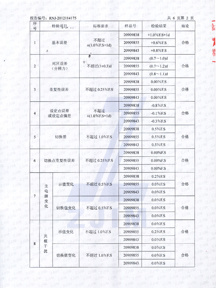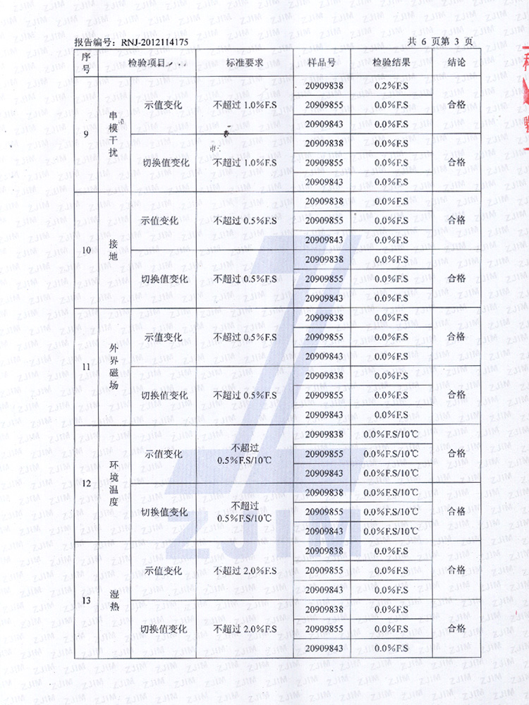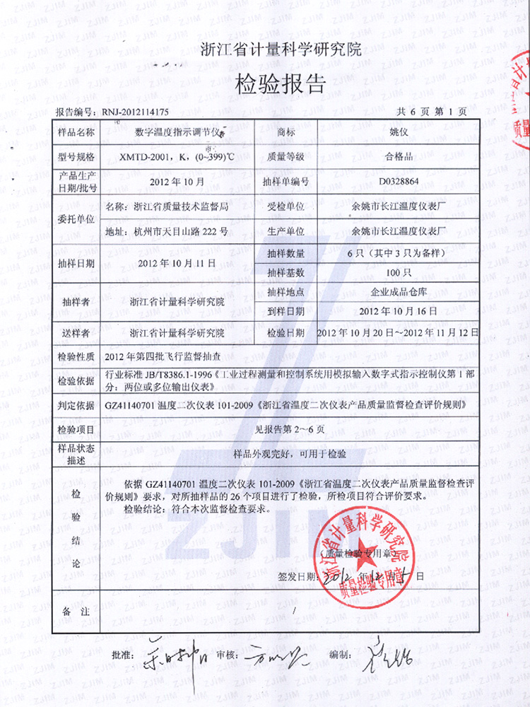 2011年第2季度檢測報告(工業(yè)熱電偶)